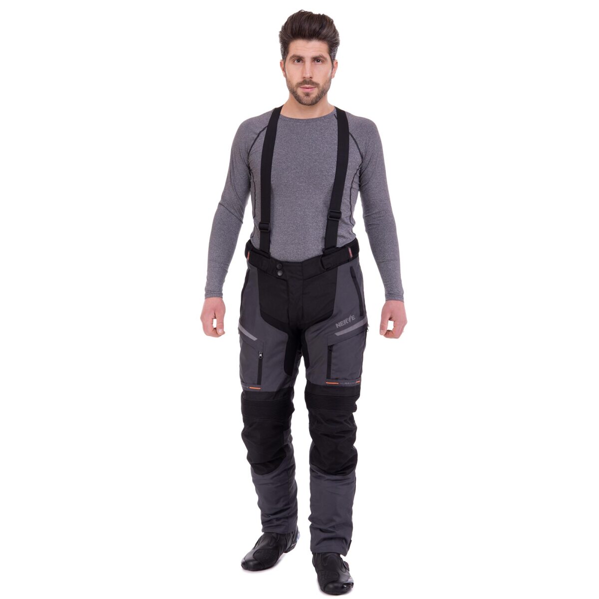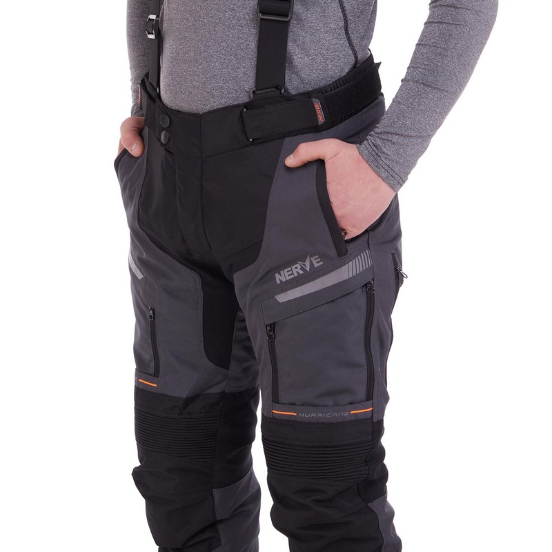 Мотоштаны от популярного бренда NERVE изготовлены из полиэстерового оксфорда 600D. Дополнительное полиуретановое покрытие обеспечивает устойчивость к износу.