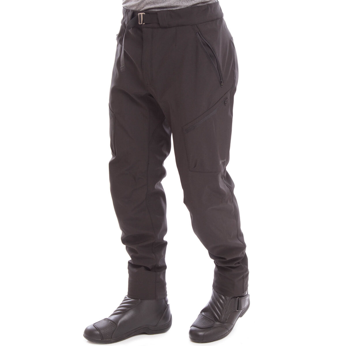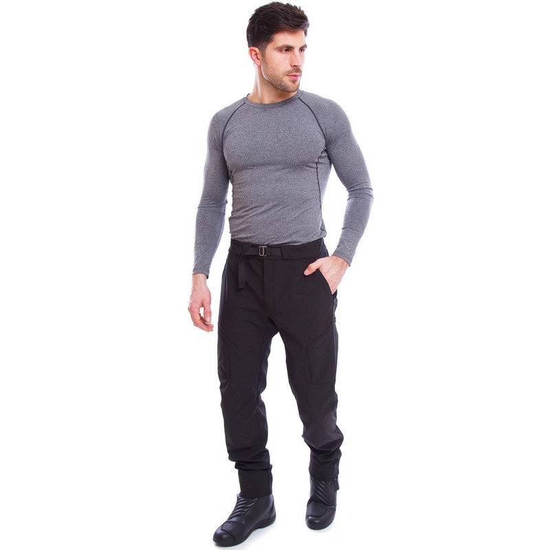 На поясе мотоштаны регулируются по обхвату благодаря ремню с пластиковой пряжкой. Боковые карманы застегиваются на молнии. Также карманы на молнии расположены над коленями.