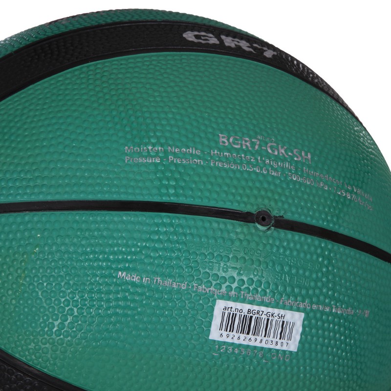 MOLTEN GR7 — это мяч, который понравится всем фанатам баскетбола и прослужит не один год. Баскетбольный мяч изготовлен из резины — прочного и универсального материала, который не впитывает влагу. Благодаря этому мяч можно использовать как на улице, так и в помещении. Резина обеспечивает отличное сцепление не только с руками игроков, но и с покрытием площадки. Дополнительно хорошему сцеплению способствует рельефный рисунок на поверхности покрышки. Мяч представлен в зелёно-чёрном цвете, что отклоняется от классических представлений о баскетбольных мячах.