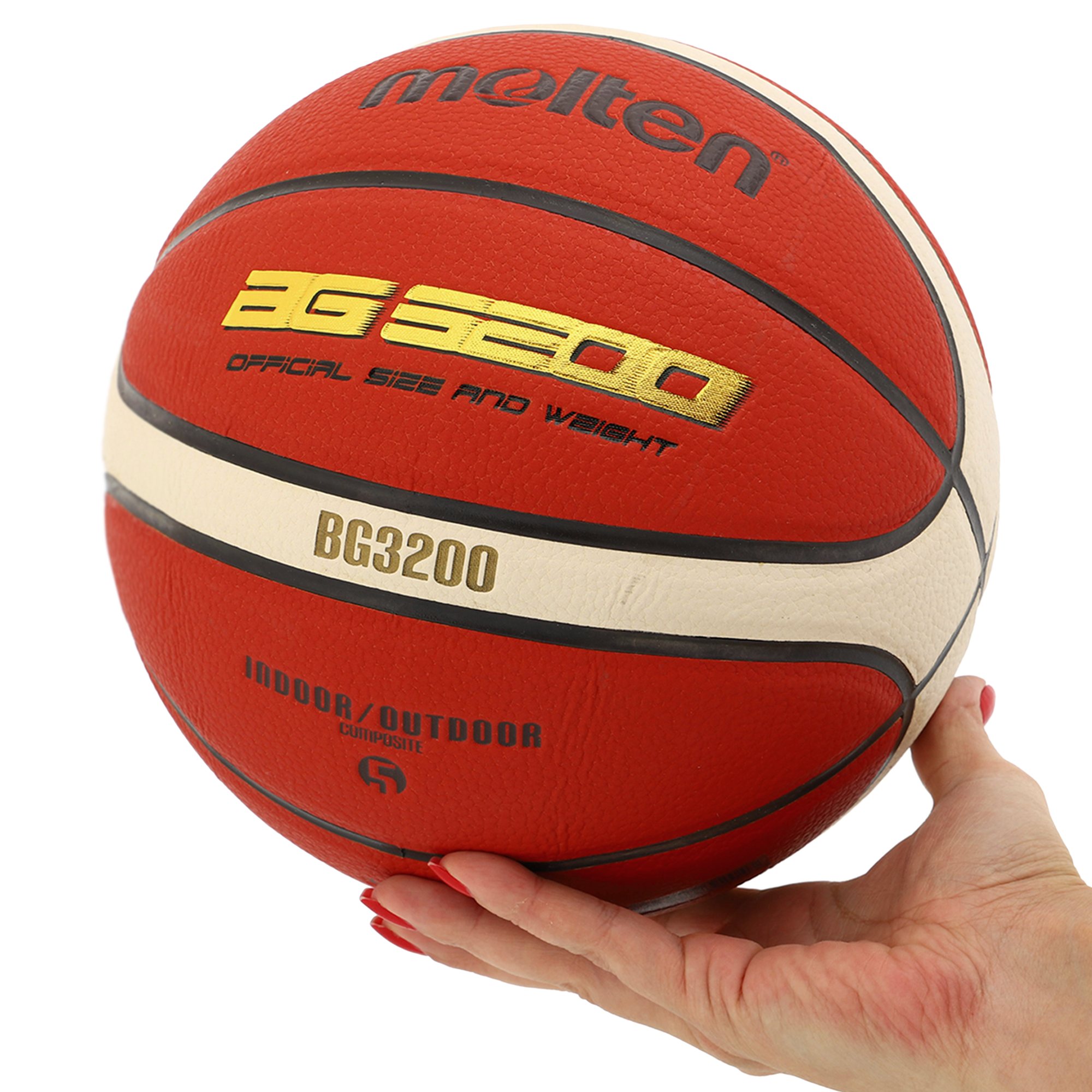 Баскетбольный мяч MOLTEN — это профессиональный снаряд для юниоров, предназначенный для проведения соревнований и подготовки к ним. Он изготовлен из искусственной кожи премиум-класса и имеет сложную конструкцию. Надежная бутиловая камера армирована нейлоновой нитью и покрыта мягким слоем из пеноматериала. Эксклюзивная поверхность с тиснением «uniform flat-pebble» обеспечивает надежный захват и фиксацию мяча и обеспечивает больше контроля даже в те моменты, когда руки игрока влажные. Покрышка из 12 полиуретановых панелей имеет плоские каналы в местах соединения. Это позволяет увеличить площадь поверхности мяча, уменьшить высоту панелей и, как результат, добиться более стабильного вращения и лучшей точности полета. Прочный материал покрышки не делает мяч жестким, его поверхность мягкая, а текстура предупреждает скольжение.