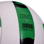 Панели мяча сшиты между собой. Такой способ изготовления покрышки делает снаряд не уязвимым к повышенной влажности. Он непривередлив в уходе. Его можно брать с собой на природу, использовать на уличной площадке или в зале.