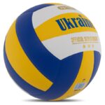 Яркий волейбольный мяч имеет желто-синюю расцветку. Современный национальный дизайн и красивый, и практичный. Благодаря ярким, контрастным цветам мяч хорошо виден игрокам, что позволяет контролировать процесс игры, облегчает работу судьи.