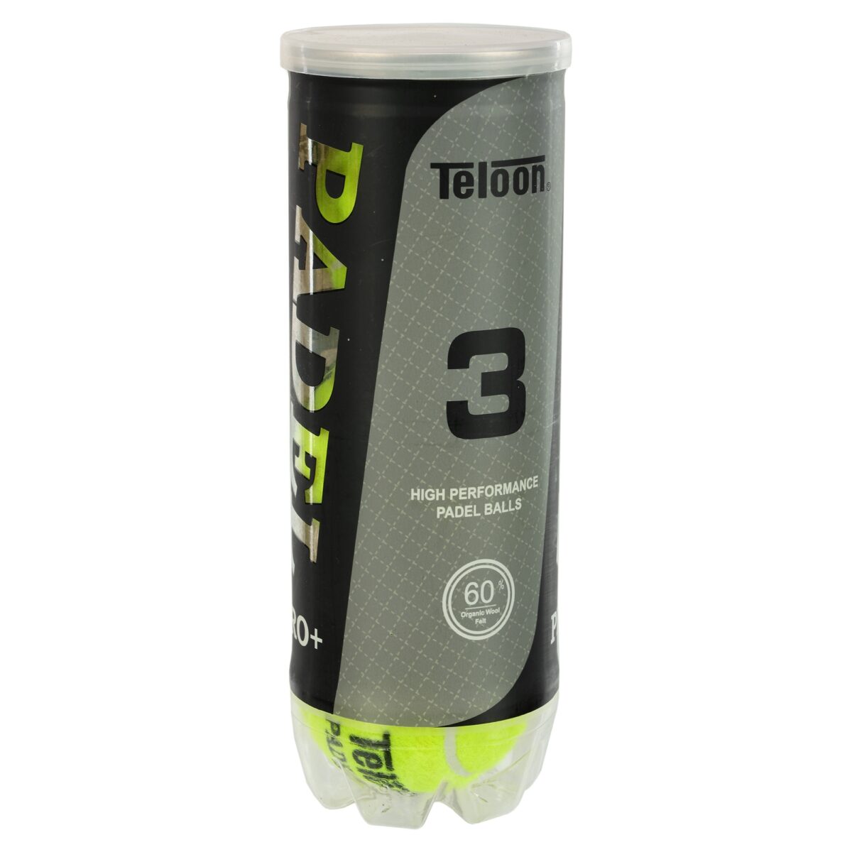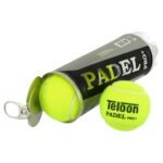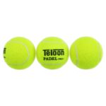 Мячи TELOON для падел тенниса изготовлены в соответствии с установленными Международной федерацией падел-тенниса правилами и стандартами. Размер мяча в диаметре 6,56 см, масса — 57,5 грамм. Изделие состоит из полого сердечника из натурального каучука и гладкого верхнего покрытия. Внутреннее давление в мячах понижено в сравнении с теннисными, отскок обеспечивает амортизирующая способность каучука. Средняя высота отскока мяча находится в пределах 135-145 см. Долговечность и износоустойчивость мяча обеспечивает внешнее покрытие из фетра. Яркий салатовый цвет мячей обеспечивает хорошую видимость в разных условиях освещения. Мячи поставляются в PET-тубе по 3 шт.