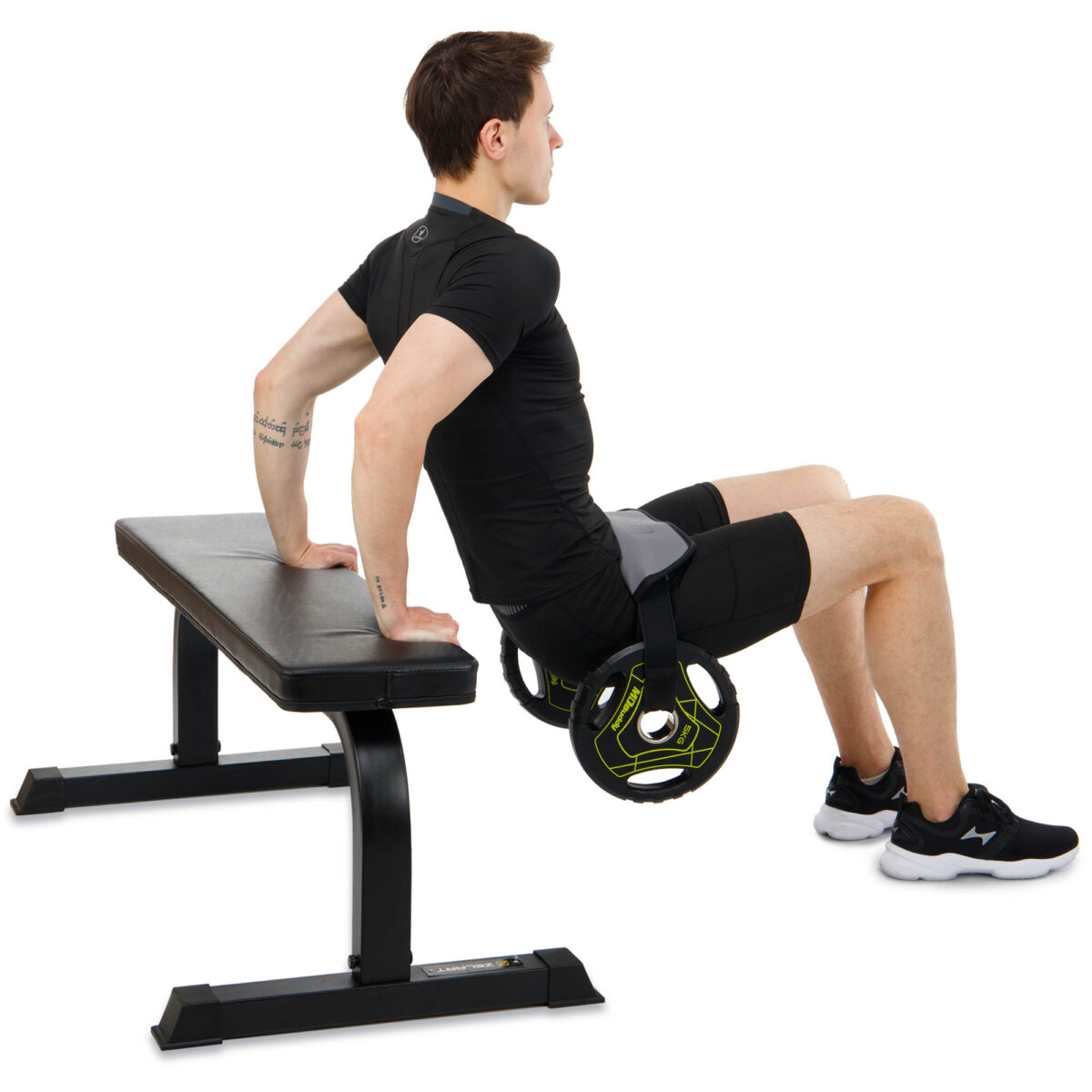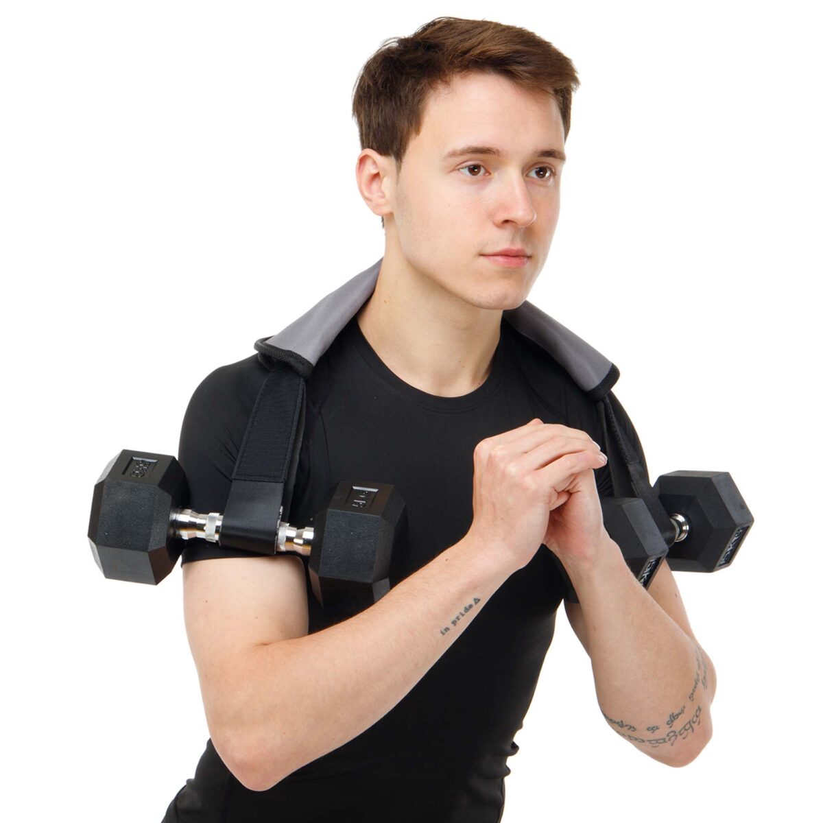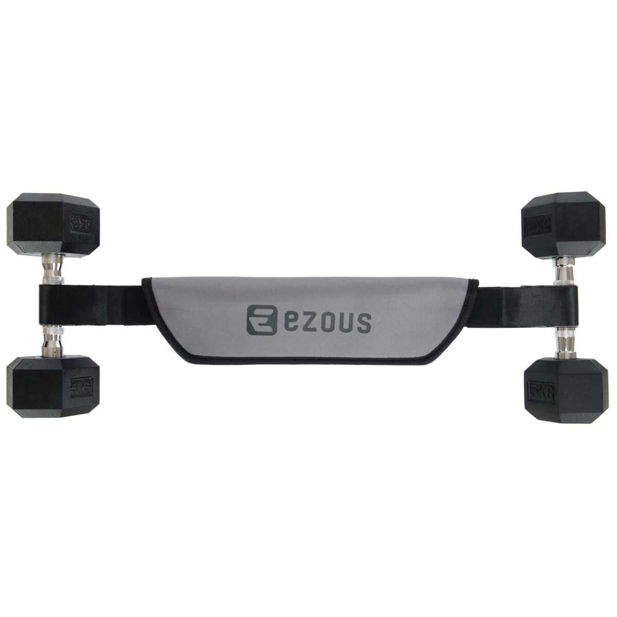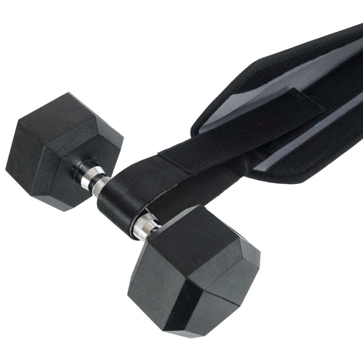Набедренный пояс PORTABLE HIP THRUST STRAP EZOUS — это современный инвентарь для эффективных домашних тренировок. Благодаря использованию пояса можно брать дополнительные отягощения для тренировки бедер и не только. Отягощение, например гантели, фиксируются по бокам на поясе с помощью специальных креплений (петель). Можно выполнять различные упражнения, включая упражнение на пресс, приседания, отжимания и даже упражнение на растяжку. Пояс изготовлен из неопрена и полиэстера. Использование двух этих материалов обеспечивает максимальную прочность и устойчивость износу. Изделие можно использовать для персональных домашних тренировок или тренировок в зале. Набедренный пояс имеет привлекательную спортивный дизайн и универсальный размер. Ширина изделия составляет 11 см, а длина — 43 см. Весит пояс всего лишь 213 г.