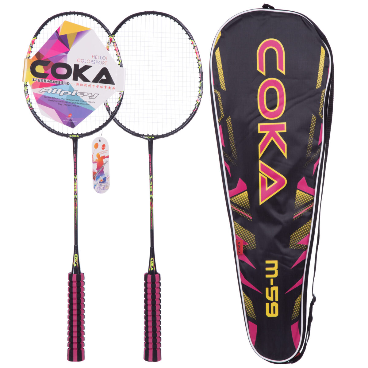 Для любительской игры в бадминтон и веселого времяпрепровождения можно использовать набор ракеток COKA. Набор состоит из двух ракеток со стальным ободом и чехла для их транспортировки и хранения. Набор годится для любительской игры.