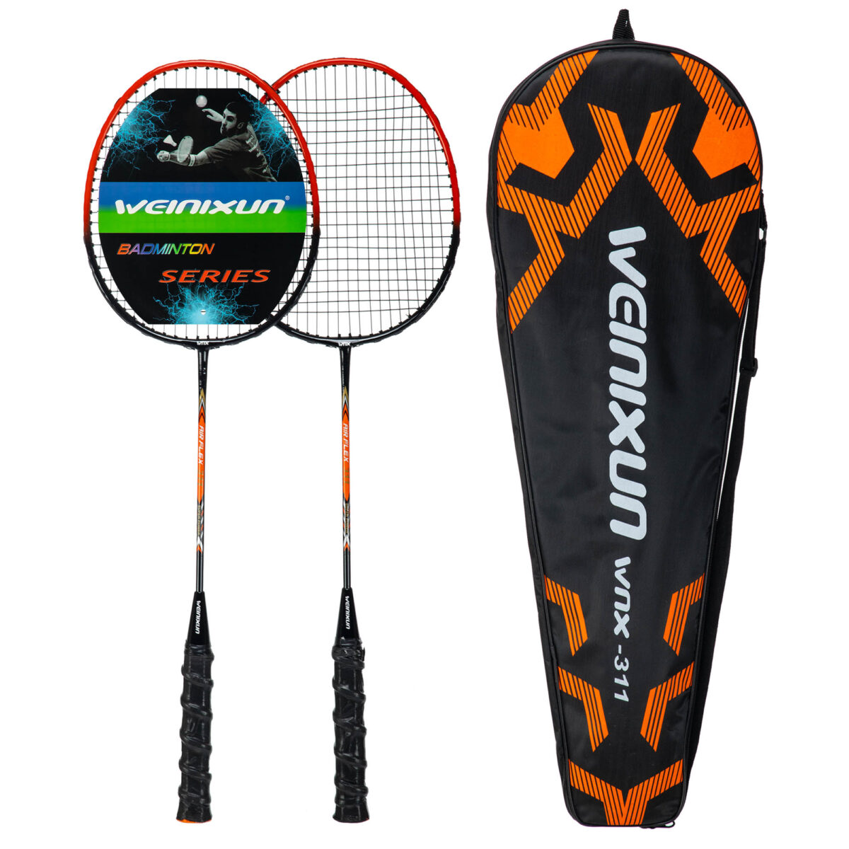 Набор для бадминтона WEINIXUN включает в себя две ракетки, изготовленные из высококачественной стали, что обеспечивает прочность и долговечность. Они имеют оптимальную весовую балансировку, что позволяет улучшить точность ударов и комфорт при игре. Комплект поставляется в удобном чехле, который позволяет легко хранить и транспортировать набор, сохраняя ракетки в отличном состоянии.