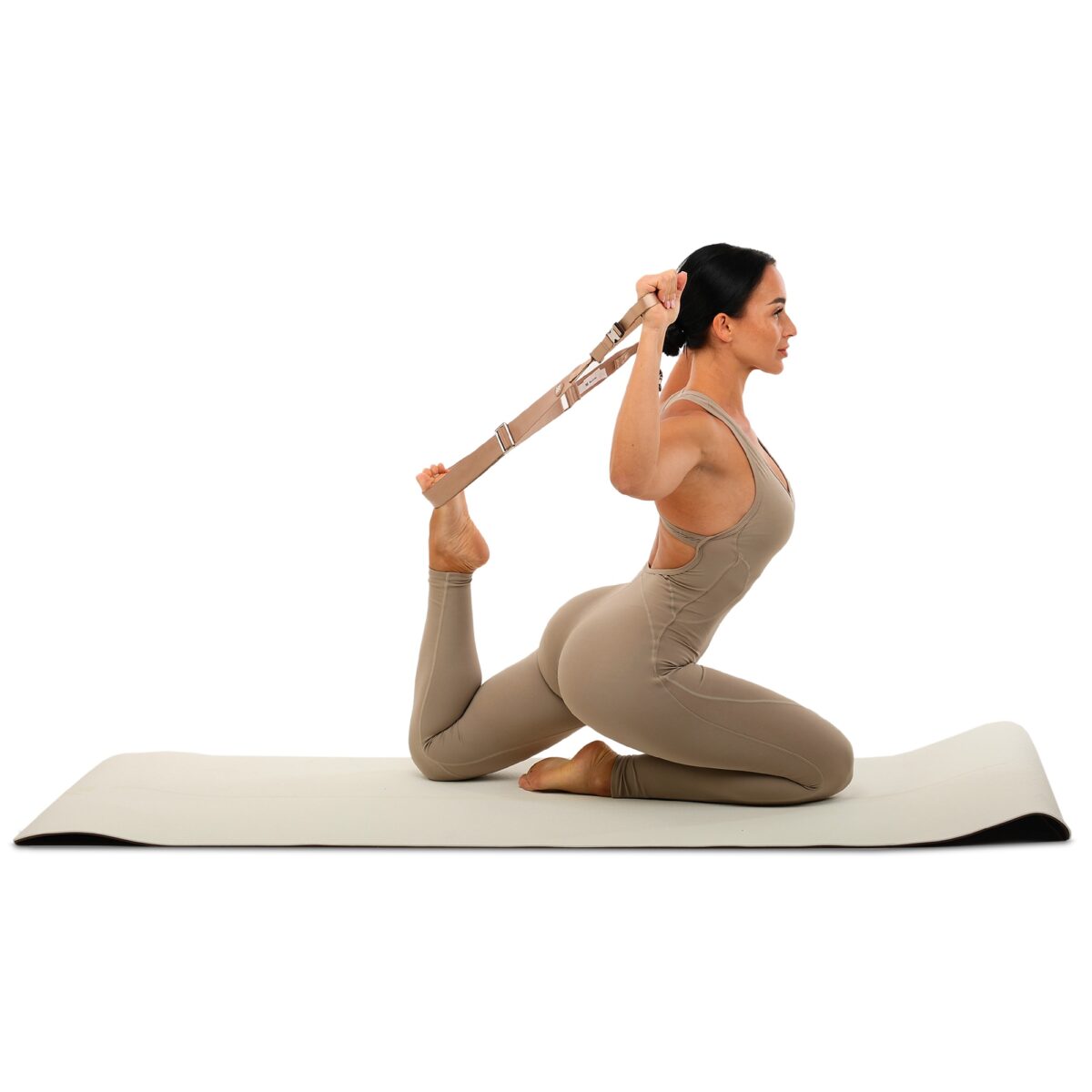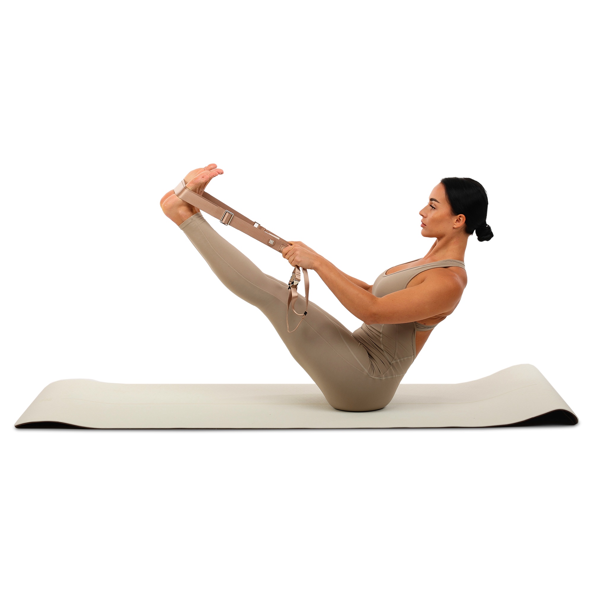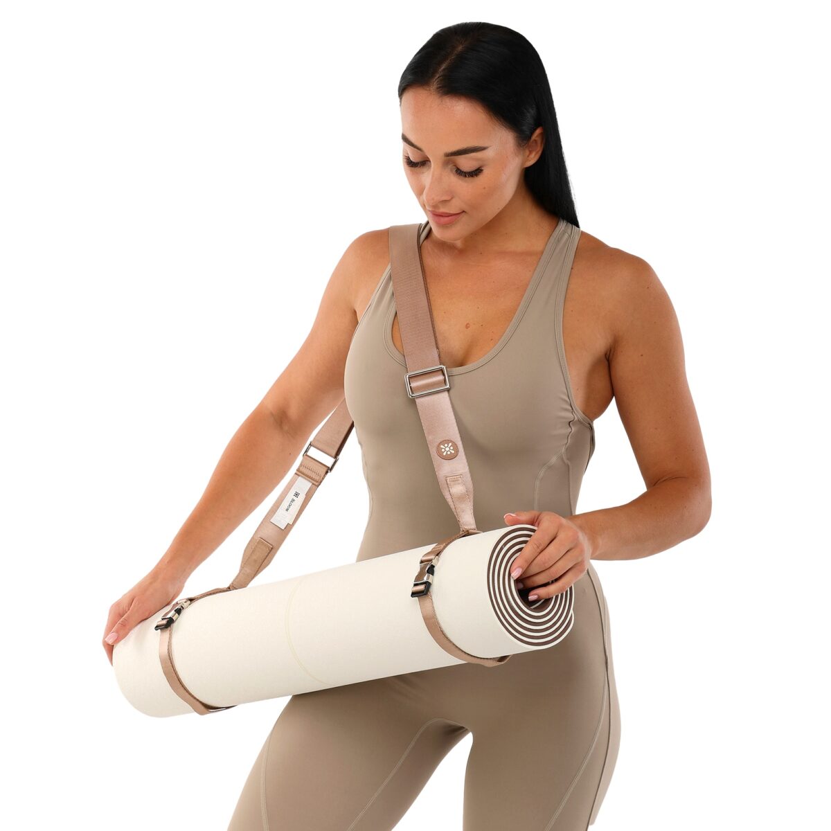 С помощью стяжки удобно носить коврик с собой и выполнять упражнения на растяжку.