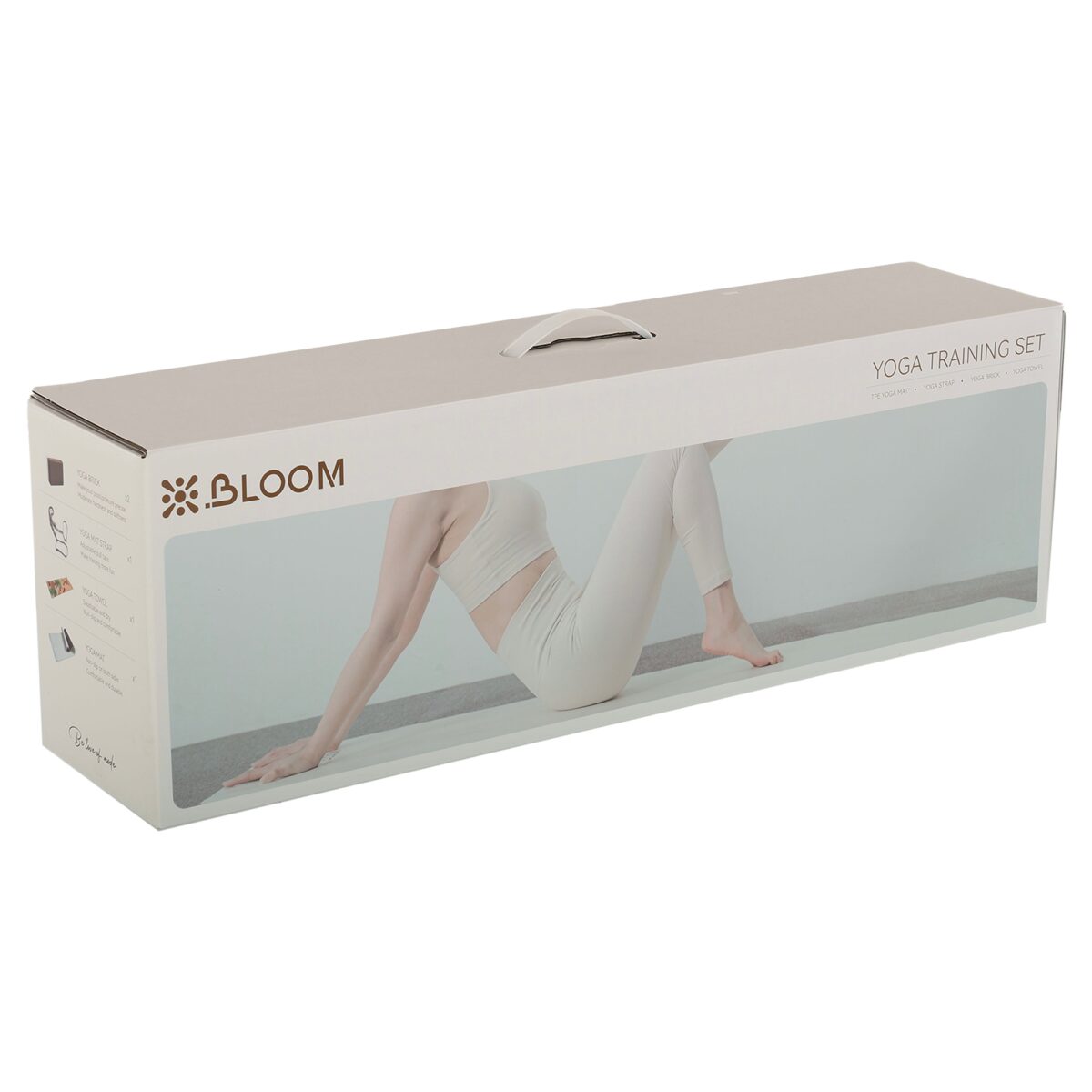 Набор для йоги BLOOM — это комплект, который позволит комфортно тренироваться где угодно. В набор входит коврик для йоги, специальное полотенце с интересным принтом, пара блоков для йоги и специальная стяжка для коврика. Стяжка позволяет удобно транспортировать и компактно хранить коврик в сложенном виде.