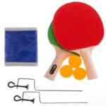 В комплект входят две ракетки, три мяча и сетка с креплением, что позволяет сразу организовать полноценную игру. Ракетки выполнены из дерева и резины (RB), гарантируя их прочность и долговечность. Поверхность ракеток с шипами помогает создавать лучшее сцепление и контроль над мячом, позволяя игрокам более точно выполнять удары.