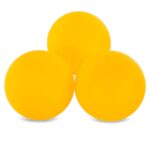 Три мяча, включенные в комплект, имеют стандартные размеры и вес, подходящие для игры на любительском уровне. Они изготовлены из качественного пластика, что способствует долговечности и стабильности полёта. Благодаря своему дизайну и материалам, мячи обеспечивают ровный и предсказуемый отскок, что делает игру более комфортной и приятной для обоих участников.