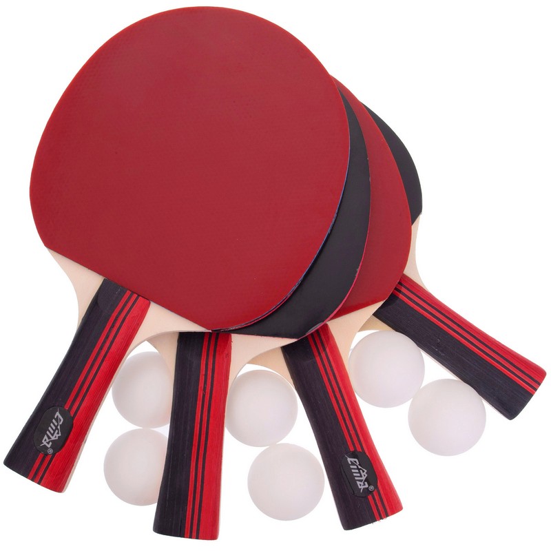 Ракетки: В набор входят четыре ракетки, изготовленные из древесины и резины (Дерево / Резина). Гладкая поверхность ракеток обеспечивает игрокам возможность выполнять точные и мощные удары, а также отличный контроль над мячом.