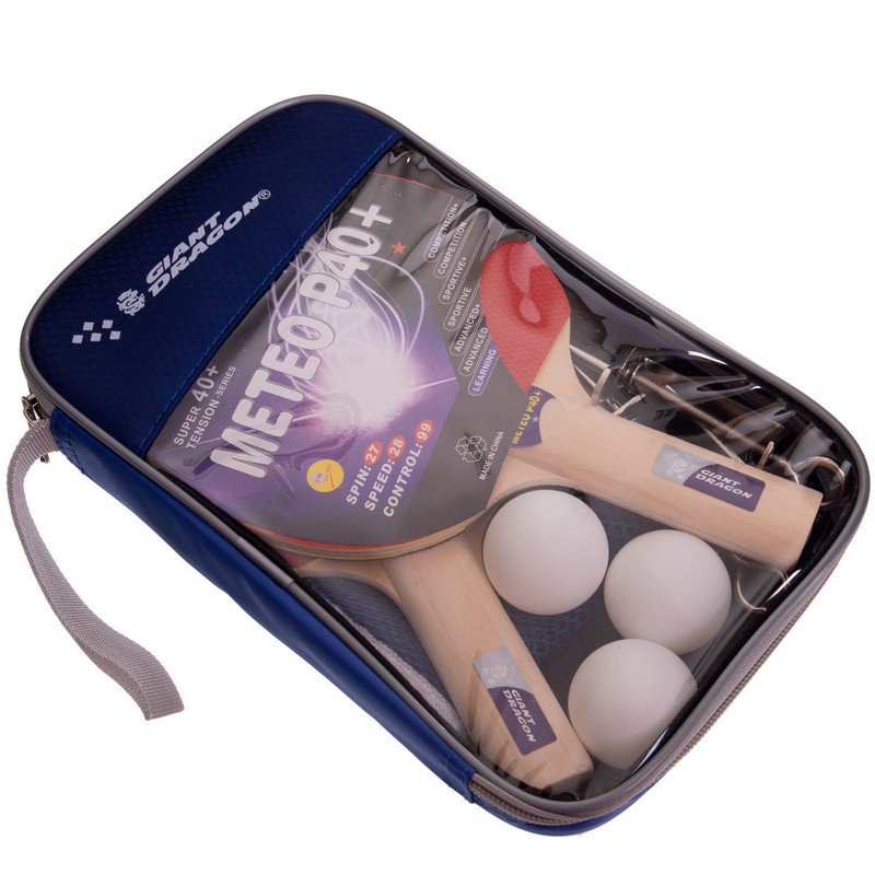 Набор для настольного тенниса GIANT DRAGON METEOR P40+1* предназначен для тех, кто ищет сбалансированный и качественный комплект для игры в настольный теннис. Этот набор подходит для игроков всех уровней, для всех, кто хочет улучшить свои навыки и наслаждаться игрой.