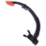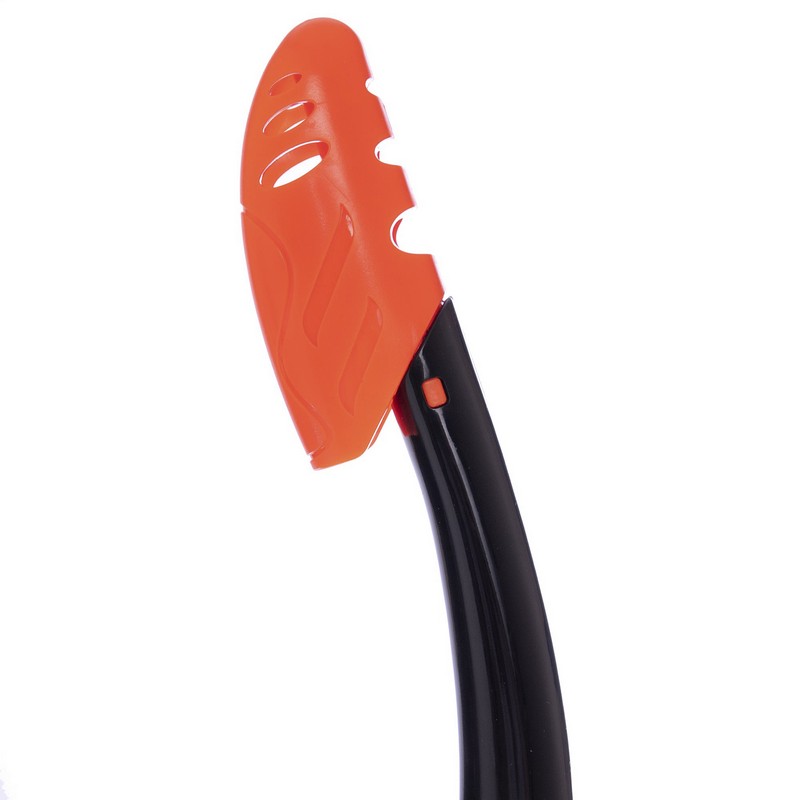 Трубка также продумана до мелочей. Верхняя часть оснащена специальным волноотбойником, который эффективно препятствует захлестыванию воды во время плавания на поверхности. Яркий наконечник делает ныряльщика более заметным в воде — это особенно важно для безопасности при плавании в открытых водоемах. Нижний продувочный клапан упрощает очистку трубки от воды, делая процесс дыхания легким и естественным. Гофрированная часть внизу трубки позволяет настроить ее положение под индивидуальные особенности строения лица, что повышает комфорт использования.