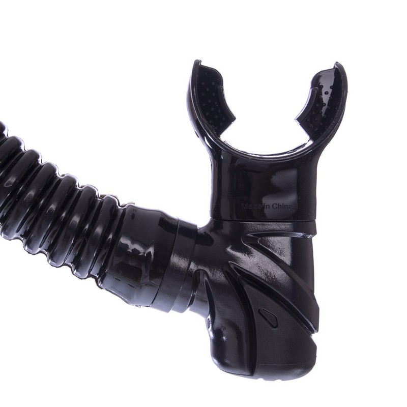 Крепление трубки к маске выполняется с помощью практичного замка — он надежно фиксирует аксессуар и не мешает во время плавания. Такое конструктивное решение делает комплект удобным для использования как новичками, так и опытными любителями подводных приключений.