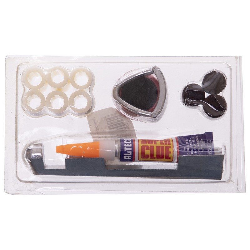 Набор для ремонта кия состоит из 15 предметов и позволяет поддерживать инвентарь для игры в надлежащем состоянии. В наборе есть всё необходимое для замены наклейки и мелкого ремонта кия.