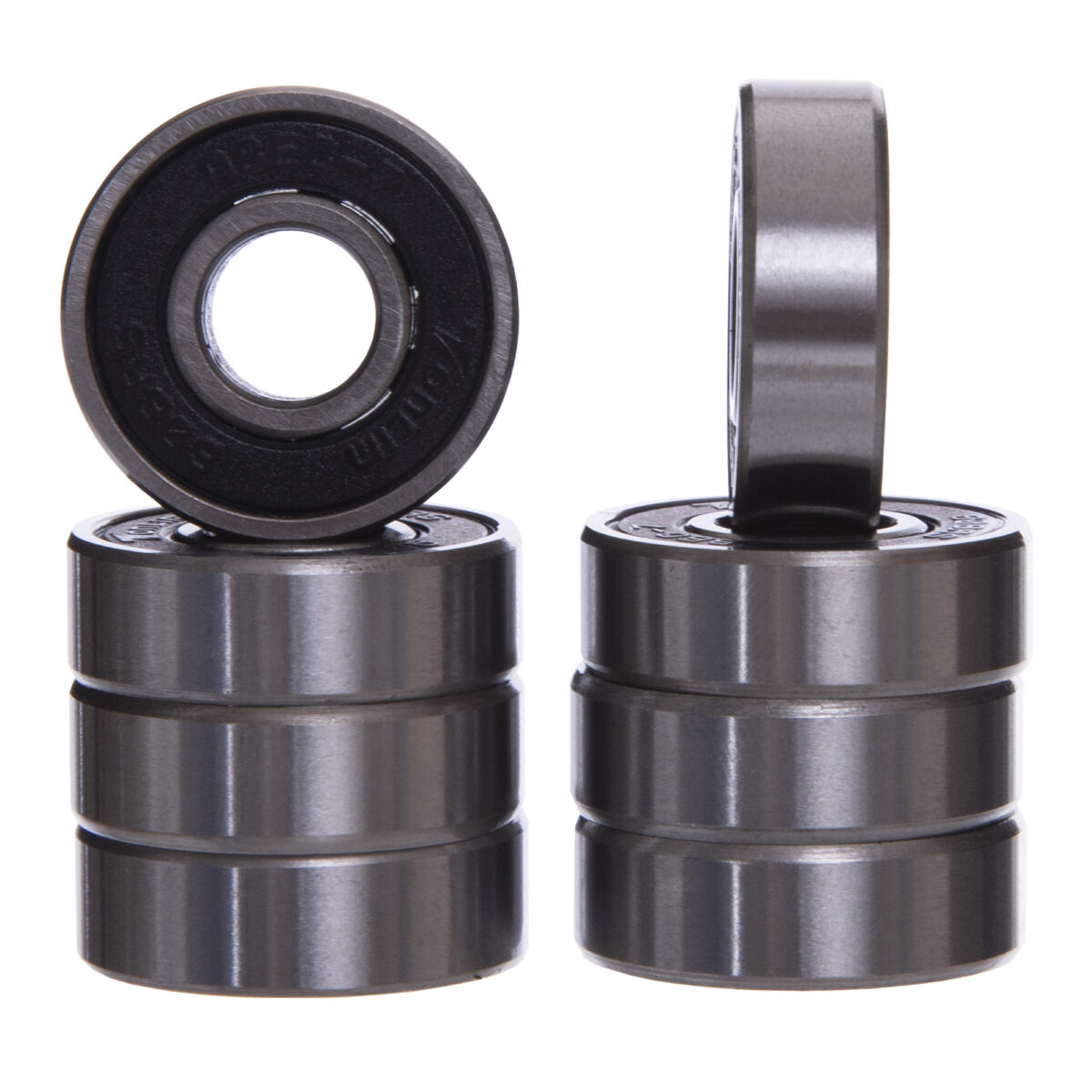 Подшипники представляют собой конструкции, состоящие из шариков, помещённых между двух независимых друг от друга колец (внутреннего и внешнего), в каждом из которых есть жёлоб, называемый дорожкой качения. Для их изготовления используется высокоуглеродистая сталь промышленного класса, устойчивая к ударам и износу. Размер подшипников стандартный, поэтому они подходят ко всем скейтбордам, а степень точности ABEC-11 (7, 9) делает их идеальными для плавного, комфортного катания. Чтобы максимально продлить срок службы подшипников, каждый из них защищён от грязи и песка специальными пыльниками, а для удобного хранения предусмотрен специальный чехол.