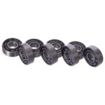 Подшипники представляют собой конструкции, состоящие из шариков, помещённых между двух независимых друг от друга колец (внутреннего и внешнего), в каждом из которых есть жёлоб, называемый дорожкой качения. Для их изготовления используется высокоуглеродистая сталь промышленного класса, устойчивая к ударам и износу. Размер подшипников стандартный, поэтому они подходят ко всем скейтбордам, а степень точности ABEC-11 (7, 9) делает их идеальными для плавного, комфортного катания. Чтобы максимально продлить срок службы подшипников, каждый из них защищён от грязи и песка специальными пыльниками, а для удобного хранения предусмотрен специальный чехол.