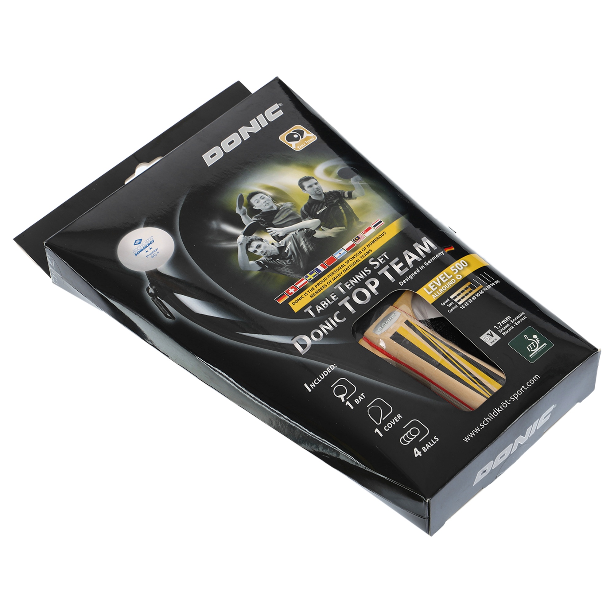 В набор входит ракетка Top Team 500, высококачественный чехол для ракетки и 4 мяча Donic 2-Star Prestige