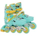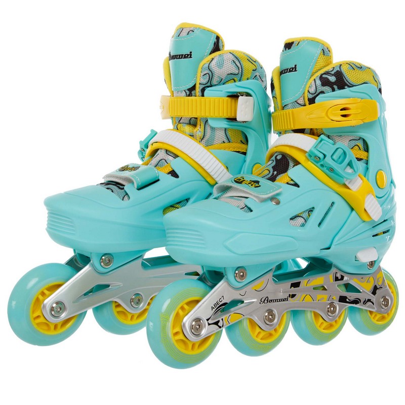 - Регулируемый размер за счет раздвижной системы, с помощью которой можно увеличивать длину роликов, подгоняя ее по стопе.