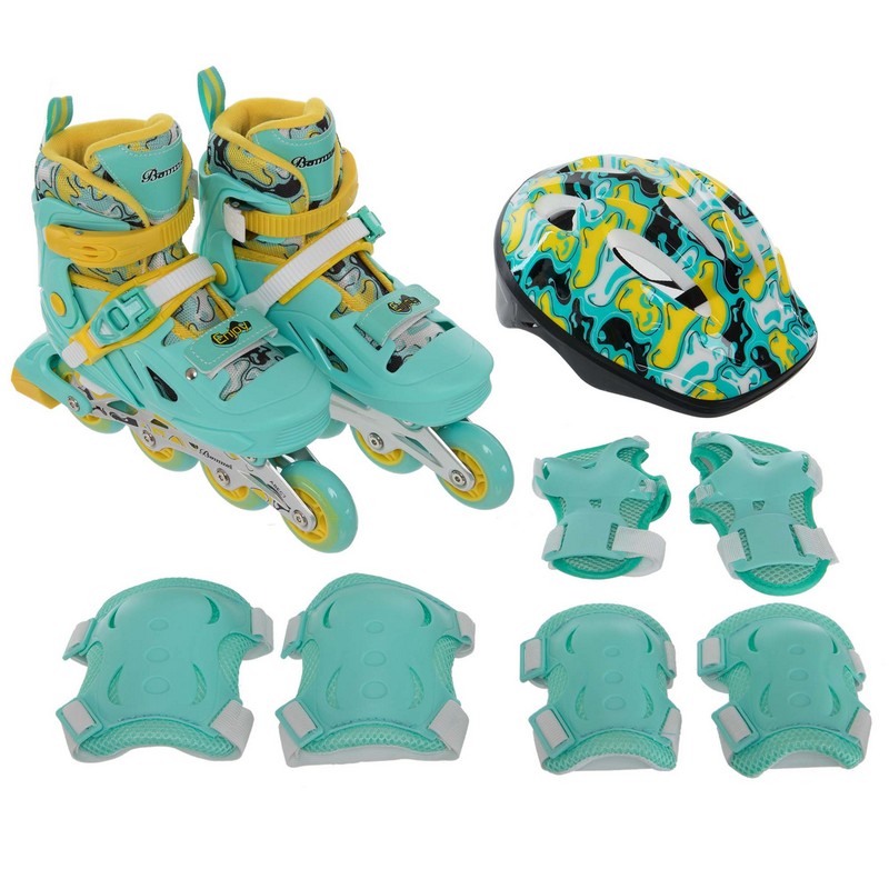 Раздвижные роликовые коньки — это стильный дизайн и современные технологии. Продаются с комплектом защиты — наколенниками, шлемом, налокотниками. Легкость и прочность роликам придает алюминиевая рама. Материалом корпуса служит ударопрочный пластик. Мягкие ботинки изготовлены из синтетической кожи со вставками вентиляции. Четыре полиуретановых колеса, расположенные в одну линию, стойки к истиранию, обеспечивают плавное скольжение, устойчивость и хорошее сцепление с поверхностью. В наличии разные цвета, роликовые коньки подходят для мальчиков и девочек.