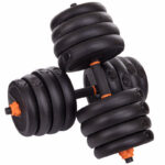 Блины изготовлены из цемента с пластиковым покрытием, что даёт двойную выгоду: они безопасны для напольных покрытий и мебели, а также делают тренировочный процесс тише — важный плюс для домашней обстановки.