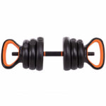 Комплектация „3 в 1“ (гантели, прямая штанга, гиря) делает этот набор универсальным заменителем целого спортзала. Дополнительный удлинитель грифа длиной 26 см позволяет мгновенно трансформировать две гантели в полноценную штангу — идеальное решение для компактного пространства и разнообразных тренировок без громоздкого оборудования.