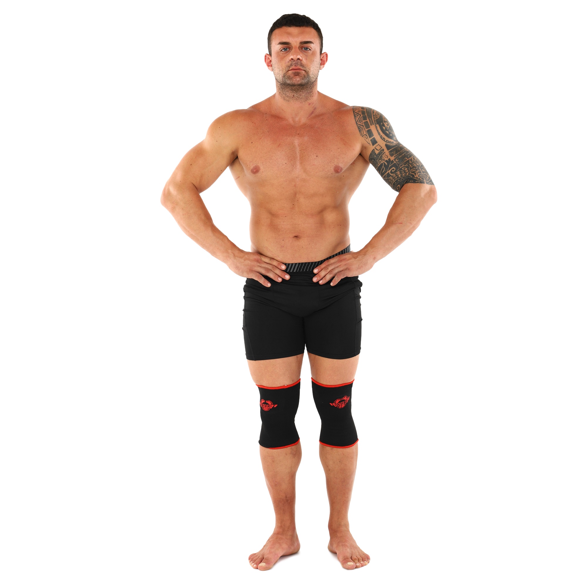 Наколенники выполнены из дышащей эластичной ткани. Материал легко принимает форму колена, благодаря чему бандажи плотно обхватывают ногу и защищают суставы. Они не препятствует кровообращению, надежно фиксируют коленные чашечки и помогает равномерно распределить нагрузку. Это особенно важно для видов спорта с регулярными тяжелыми нагрузками на ноги и колени.