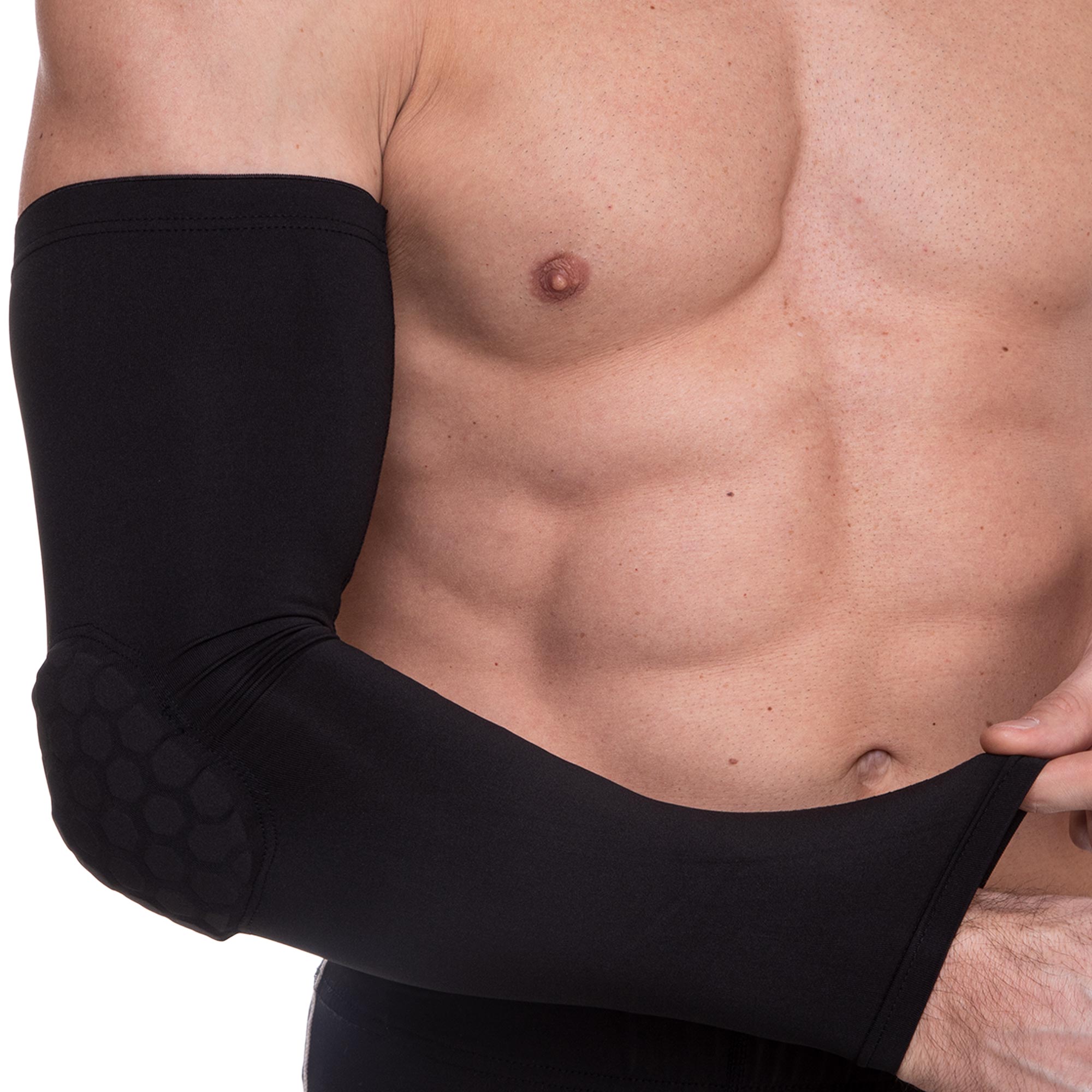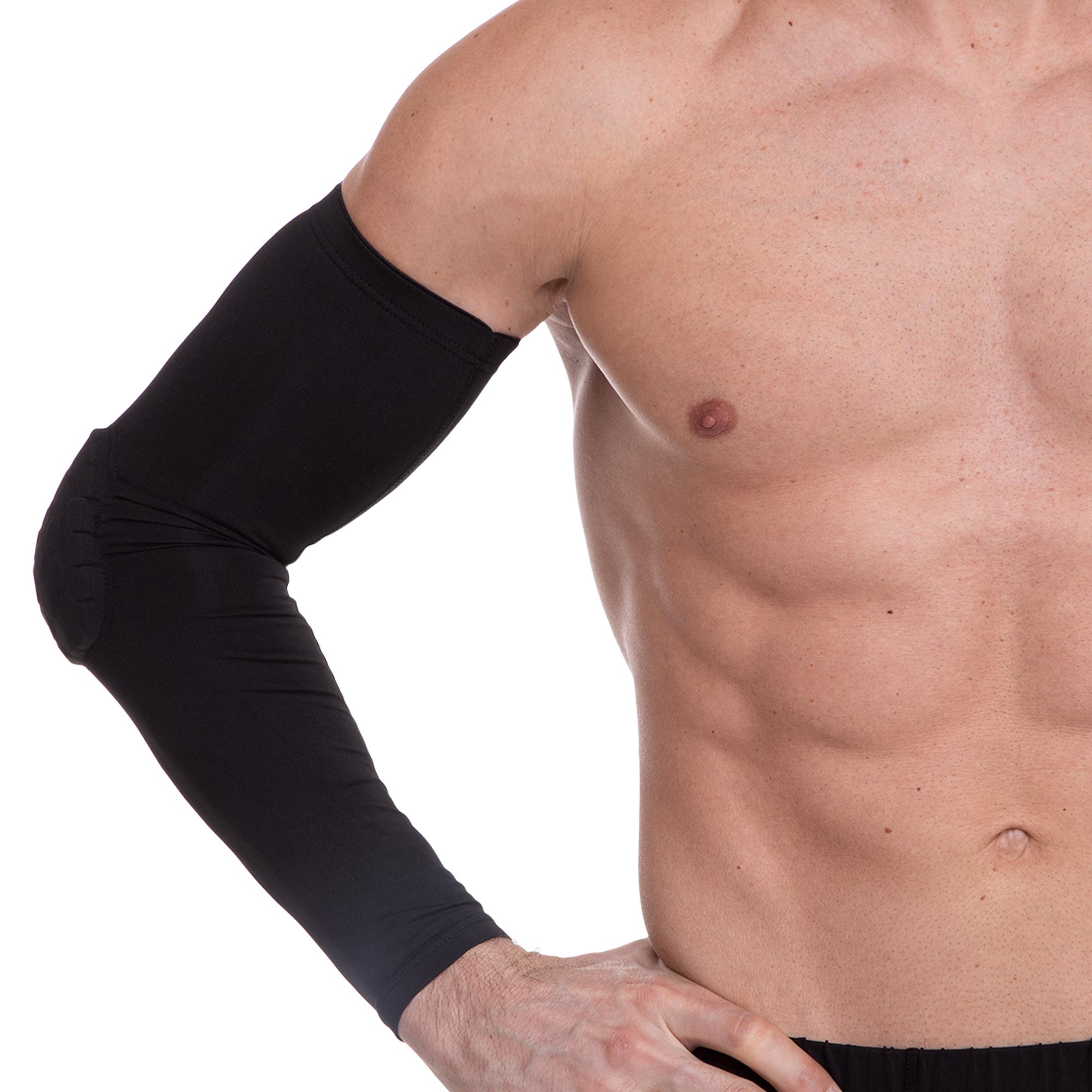 Нарукавник изготовлен из высококачественных эластичных материалов с использованием передовых технологий. Его уникальный дизайн обеспечивает плотное прилегание к коже, создавая эффект компрессии, который способствует улучшенному кровообращению и уменьшению мышечной вибрации.
