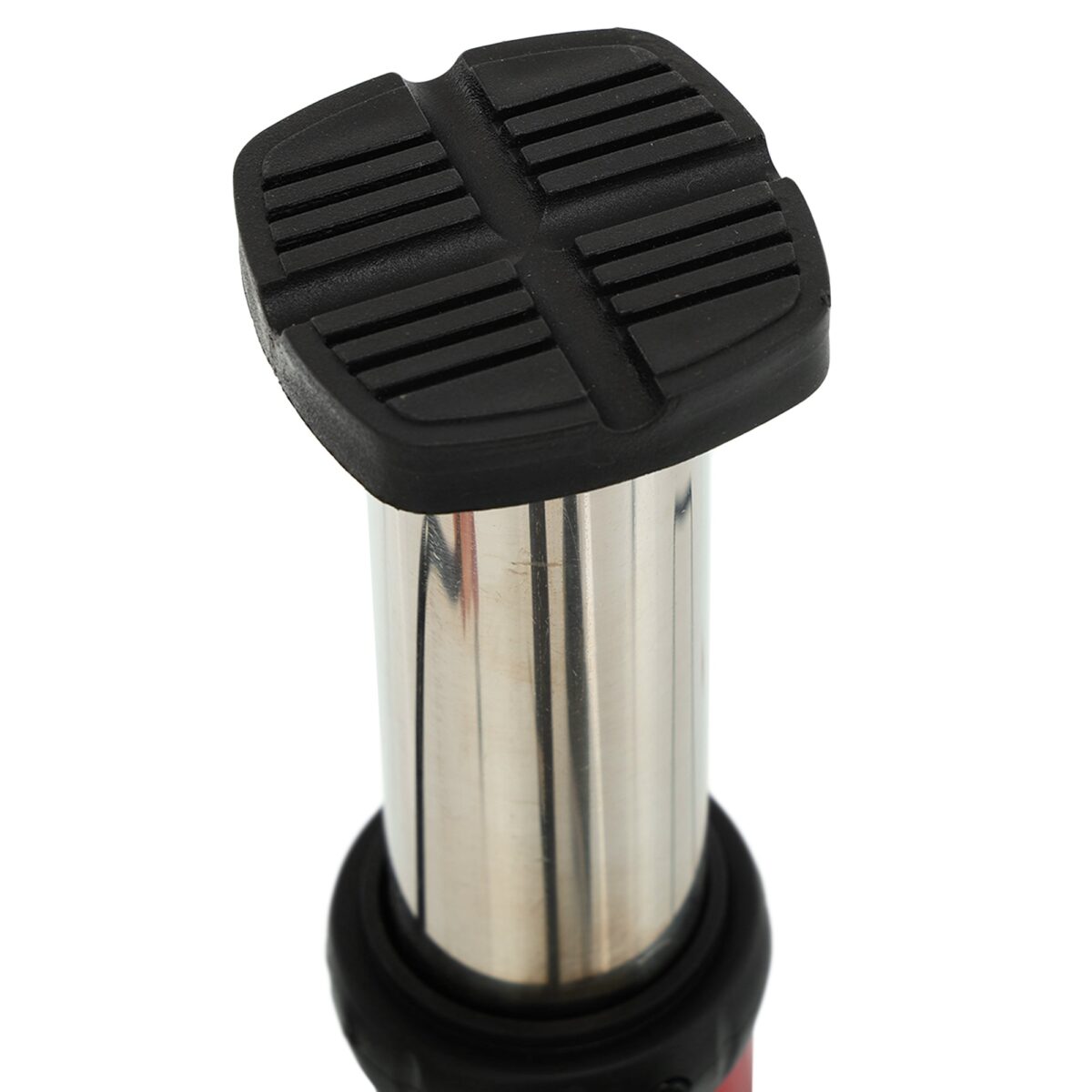 Этот насос выделяется своей долговечностью и простотой использования. Прочная алюминиевая конструкция обеспечивает его устойчивость к нагрузкам и долгий срок службы, а легкость и компактность позволяют без труда взять его с собой. Размер насоса (длина 17 см, диаметр 5 см) делает его удобным для хранения и переноски, даже в небольшом рюкзаке или бардачке автомобиля.
