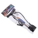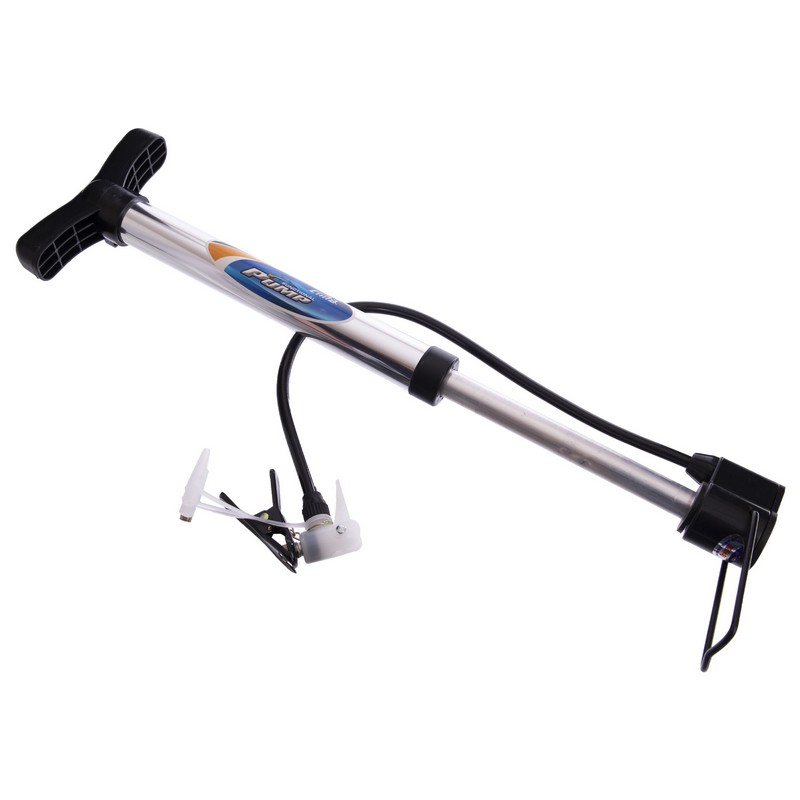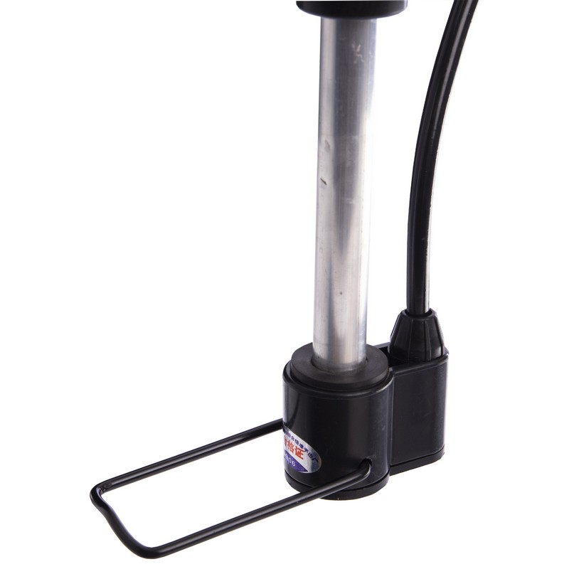 Для удобного захвата насоса руками присутствует Т-образная рукоятка из пластика. Во время накачивания шины или мяча можно держать насос двумя руками. Откидная металлическая лапка позволяет стабилизировать положение насоса во время его использования.