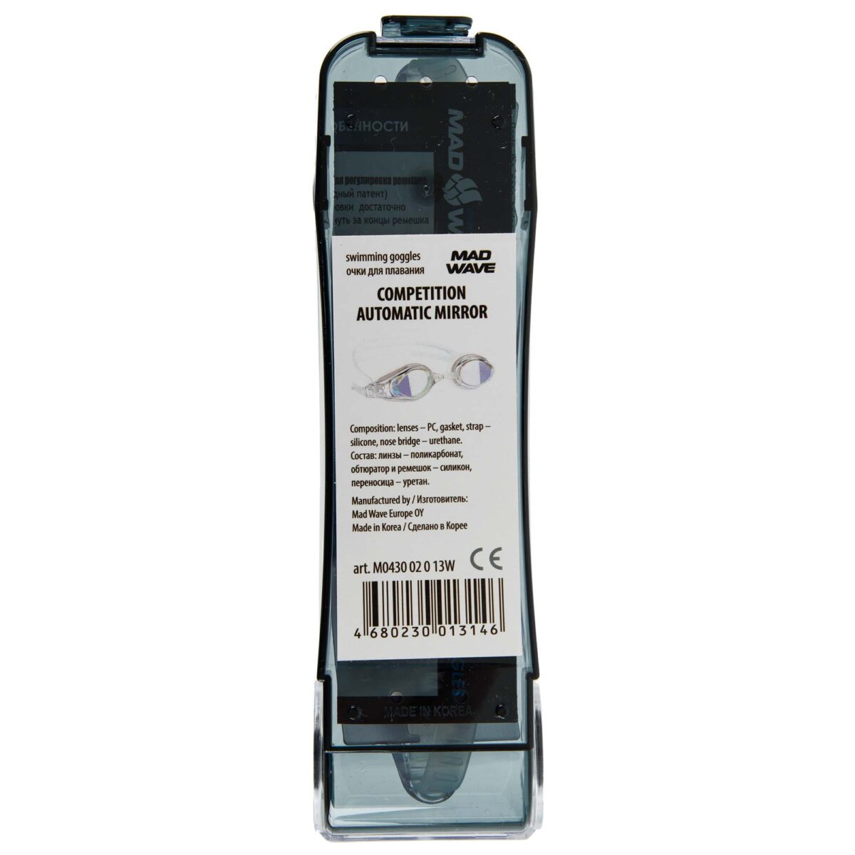 Очки Competition Mirror Automatic от компании Mad Wave предназначены для частых тренировок в бассейне. Ультракомфортная посадка, обеспеченная системой автоматической регулировки ремешка, настраиваемой носовой перегородкой и высоким обтюратором, позволит использовать очки длительное время, не испытывая неудобства. В очках Automatic используется силикон высочайшего качества, устойчивый к разрыву, который практически невозможно порвать. Зеркальные линзы с защитой от ультрафиолета UV 400 и усовершенствованным покрытием от запотевания Антифог Плюс.