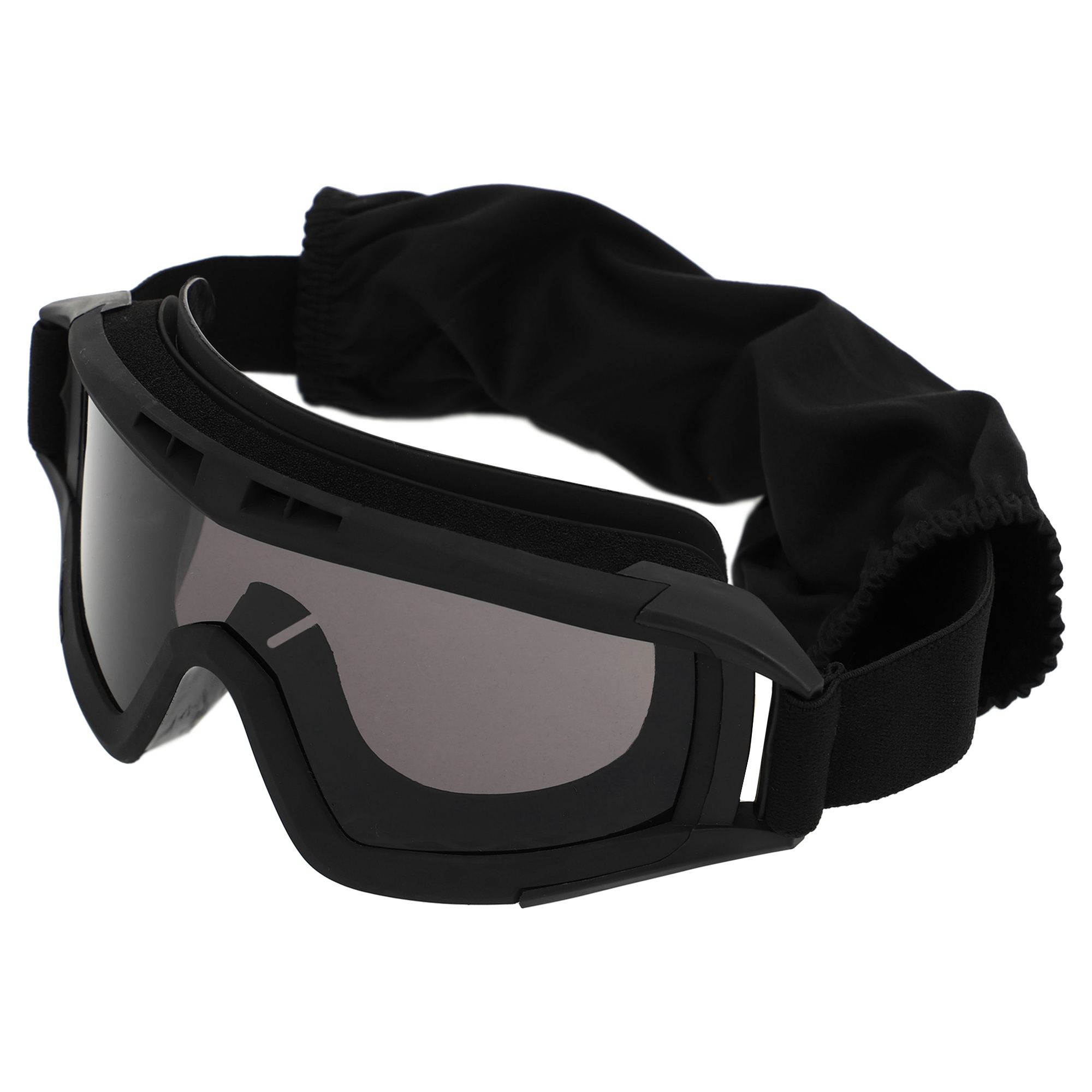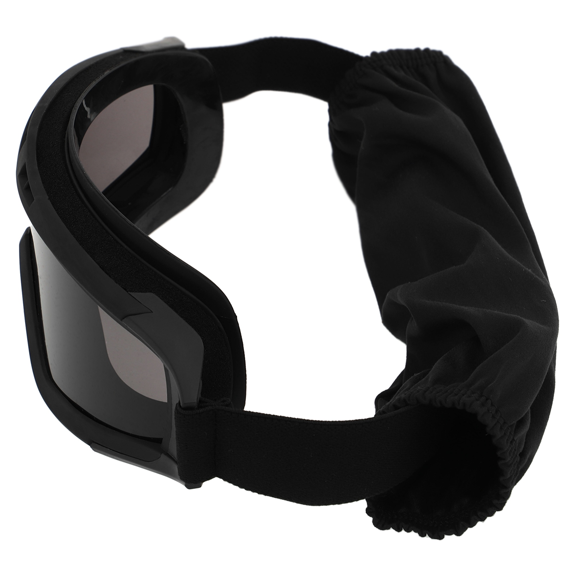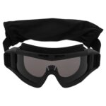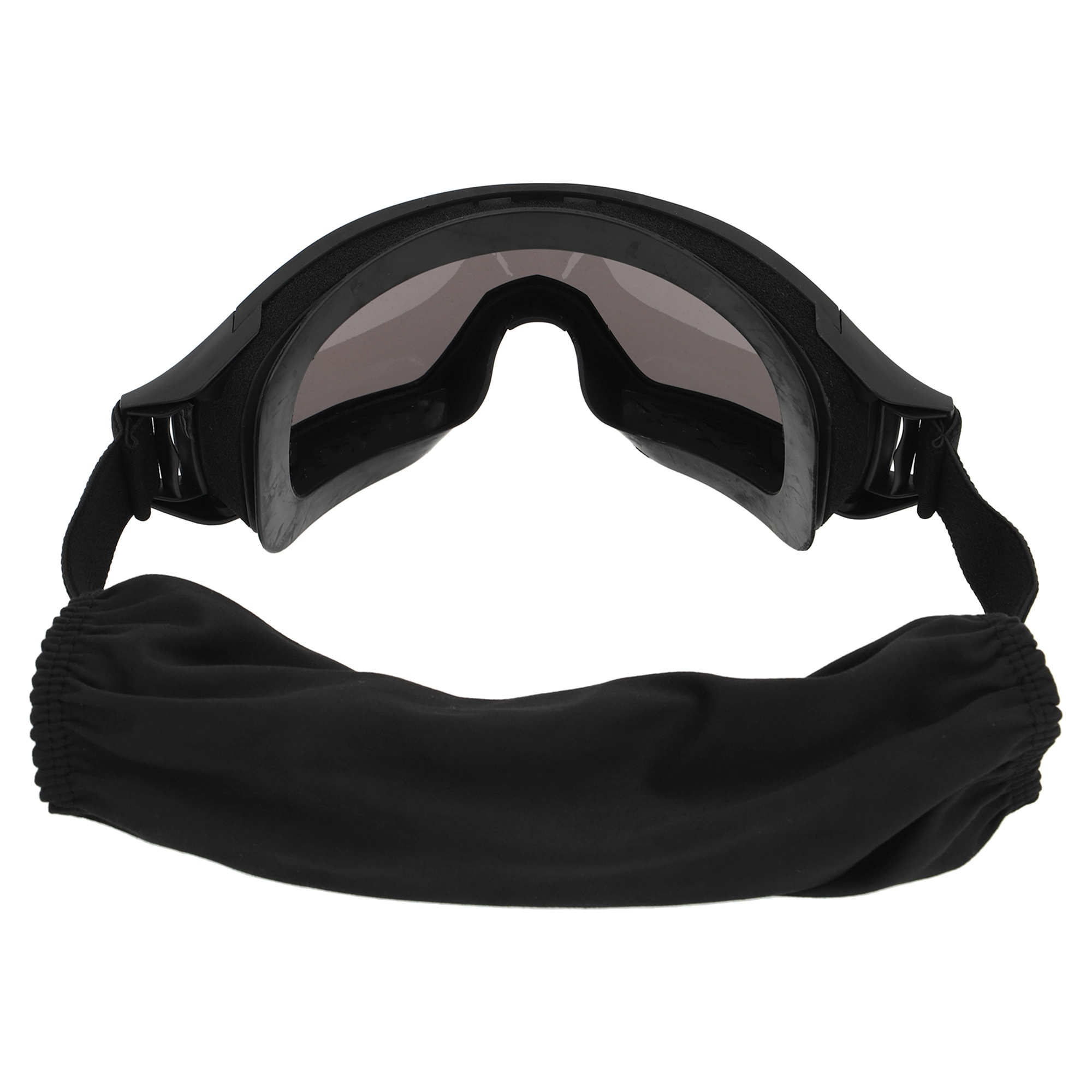 Фиксация очков обеспечивается эластичным ремешком и двойным пластиковым зажимом, гарантируя надежное прилегание к голове даже в условиях активных движений. Очки снабжены поляризацией, что позволяет снизить блики и повысить комфорт в ярком свете.