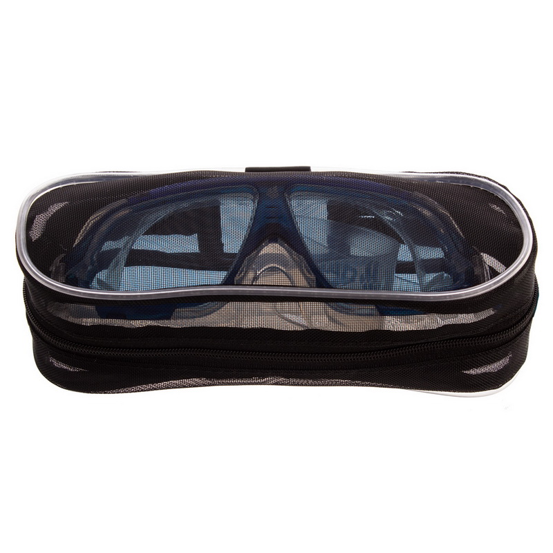 В комплекте с очками поставляется также сетчатый чехол на молнии для безопасной транспортировки и хранения аксессуара. Ткань пропускает воздух, позволяя изделию высохнуть, а также защищает линзы от царапин.