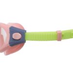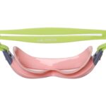 Литая конструкция оправы из 100% силикона обеспечивает мягкость и комфорт, идеально адаптируясь к форме лица ребёнка. Это снижает давление на кожу и исключает риск протечек. Удобная боковая регулировка ремешка позволяет быстро настроить посадку очков, обеспечивая надёжное прилегание и комфортное использование.