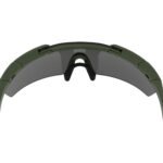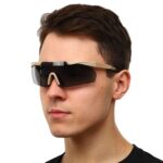 Фиксация очков осуществляется с помощью эластичного ремешка и двойного пластикового зажима, что способствует надежной посадке на голове и предотвращает случайное смещение во время активных тренировок или движения.