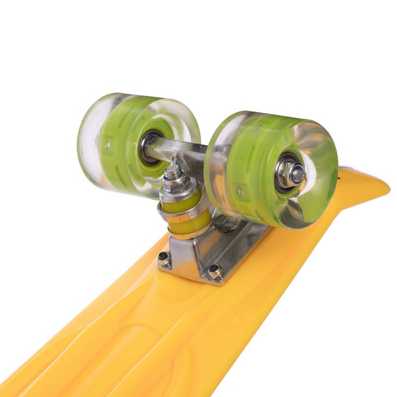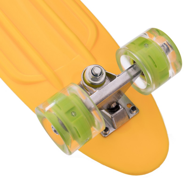 Дека изготовлена из пластика. Поверхность доски не скользит. Колеса изготовлены из полиуретана, который гасит вибрацию во время езды. Подшипники АВЕС-7 изготовлены с высокой точностью, они не шумят и дольше вращаются.