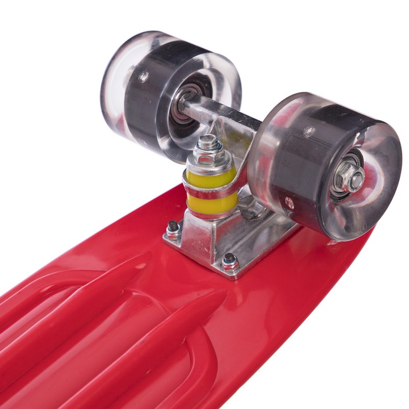 Дека изготовлена из пластика. Поверхность доски не скользит. Колеса изготовлены из полиуретана, который гасит вибрацию во время езды. Подшипники АВЕС-7 изготовлены с высокой точностью, они не шумят и дольше вращаются.