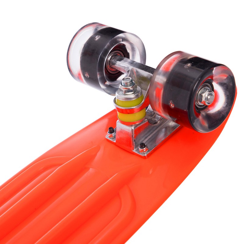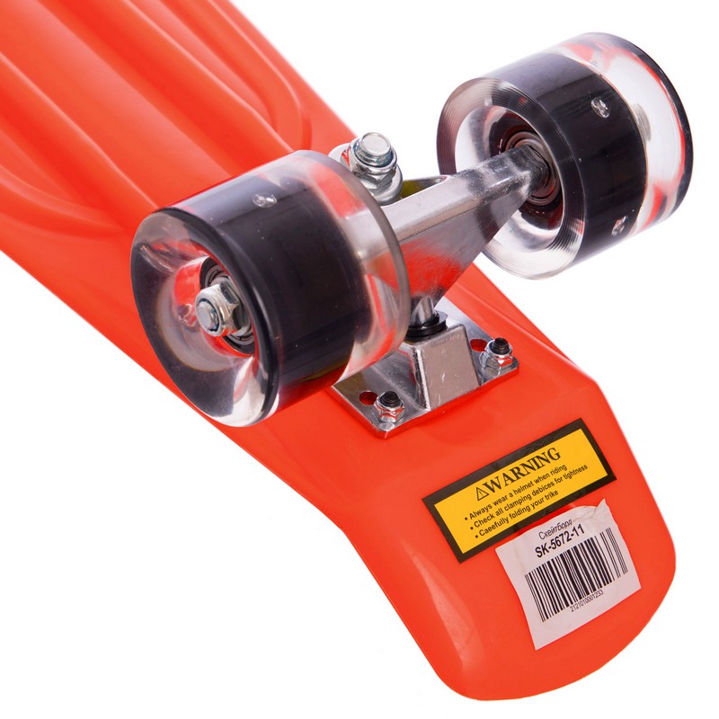 Дека изготовлена из пластика. Поверхность доски не скользит. Колеса изготовлены из полиуретана, который гасит вибрацию во время езды. Подшипники АВЕС-7 изготовлены с высокой точностью, они не шумят и дольше вращаются.