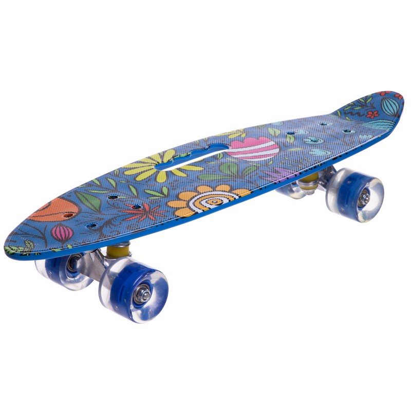 Скейтборд круизер имеет яркий дизайн. Его могут использовать взрослые и подростки. Специальное покрытие на деке препятствует скольжению ног во время движения. Колеса изготовлены из мягкого полиуретана.