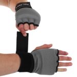 Перчатки изготовлены из полиэстера, они защищают костяшки пальцев. На запястье перчатка фиксируется с помощью эластичного бинта на липучке. Благодаря липучке перчатки-бинты на запястье сможет зафиксировать даже новичок.