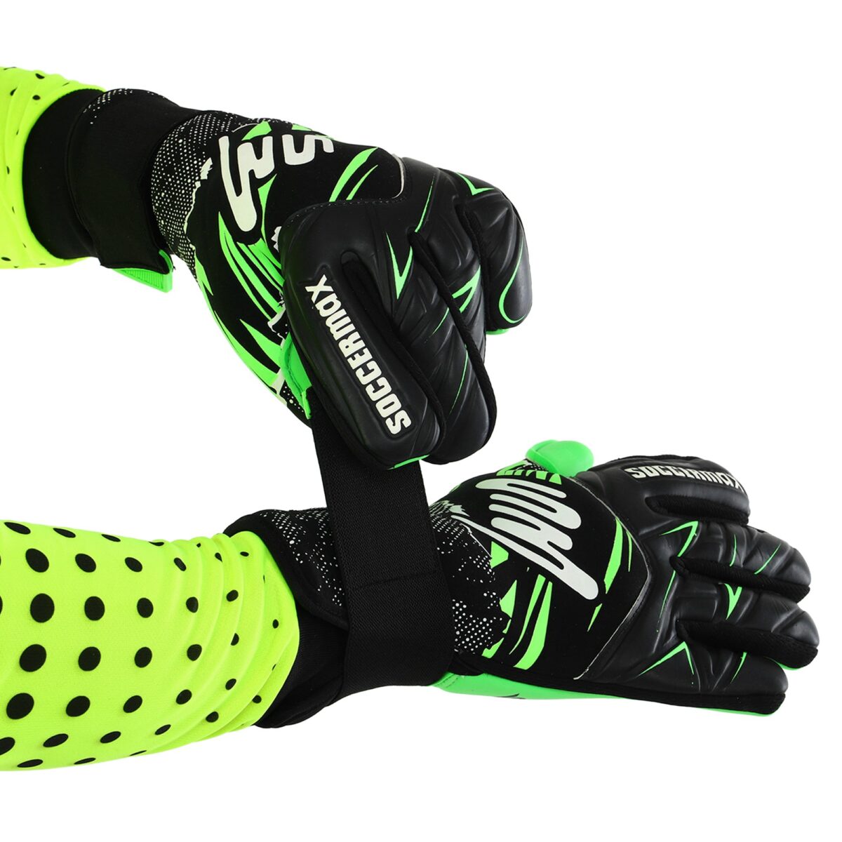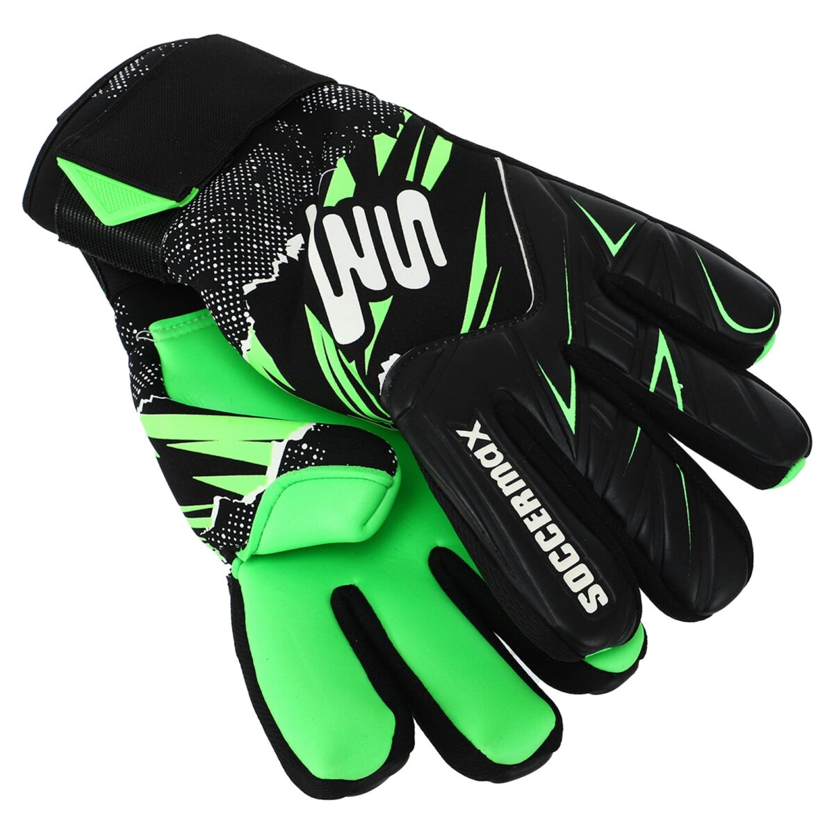 Перчатки SOCCERMAX оснащены защитными вставками, которые эффективно защищают пальцы от возможных ушибов и травм во время игры. Регулируемая липучка для надежной фиксации на запястье гарантирует идеальную посадку и удобство в использовании.