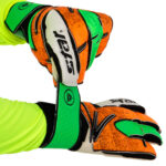 Чтобы посадка была максимально комфортной, во вратарских перчатках предусмотрена специальная система фиксации. Липучка в области запястья позволяет зафиксировать экипировку на руке.
