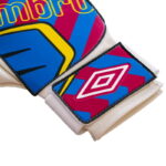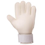 Большая площадь соприкосновения с мячом достигается прямым кроем пальцев с наружными швами. Внутренних уплотнений нет, поэтому перчатки мягкие. Широкая манжета закрепляется эластичным ремешком, защищая запястье от травм. Перчатки комплектуются прозрачным чехлом из PVC.