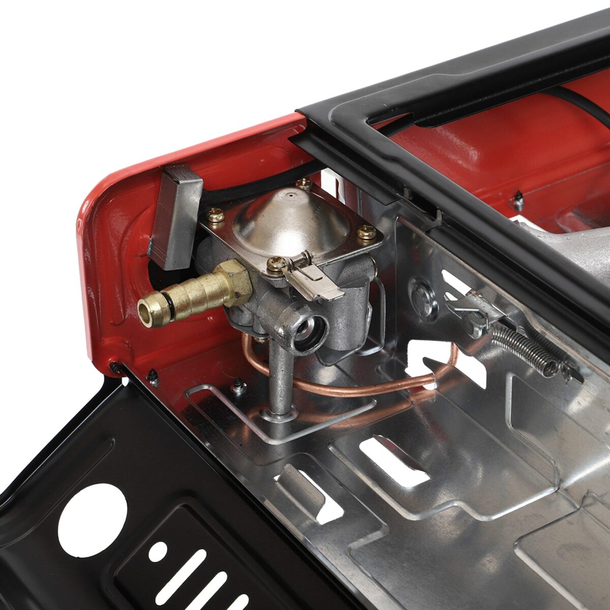 Небольшие ножки позволяют установить плиту в любом удобном месте. После установки газового баллона доступ к нему закрывается. Это делает эксплуатацию прибора более безопасной.