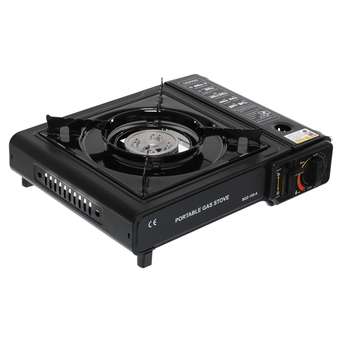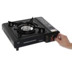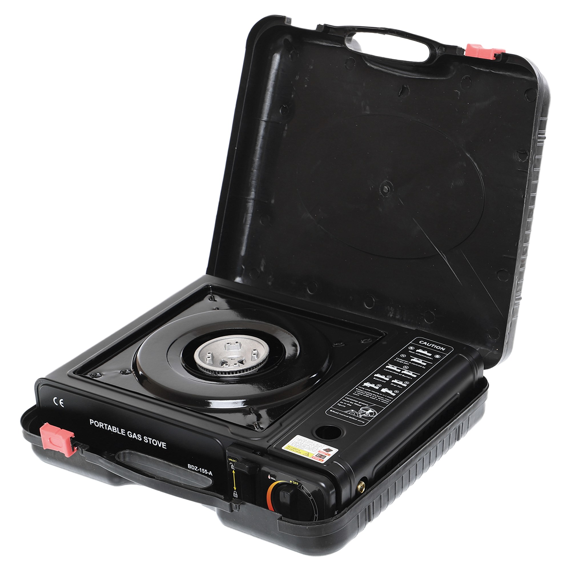 Плита комплектуется кейсом для хранения и транспортировки. Портативный прибор удобно использовать на природе, он не занимает много места в машине.