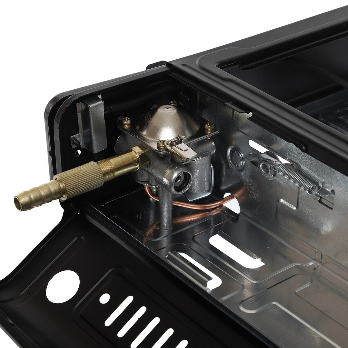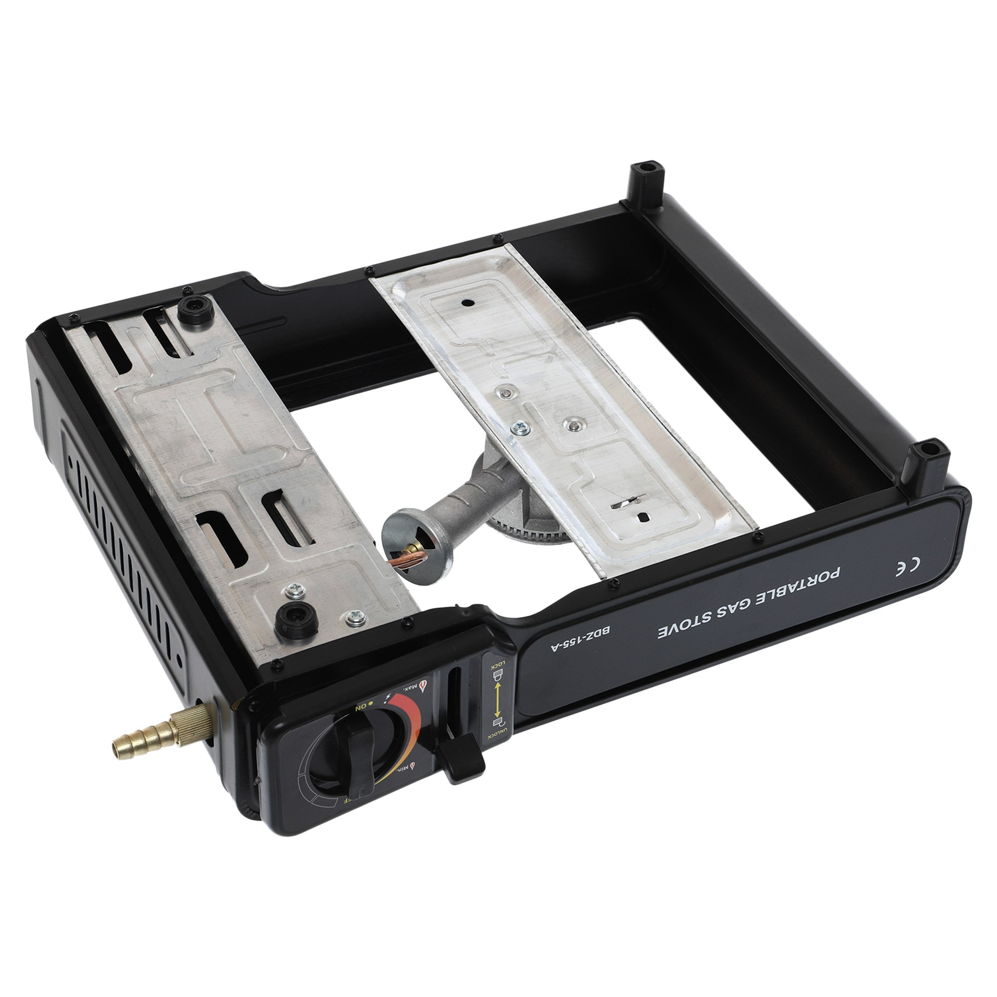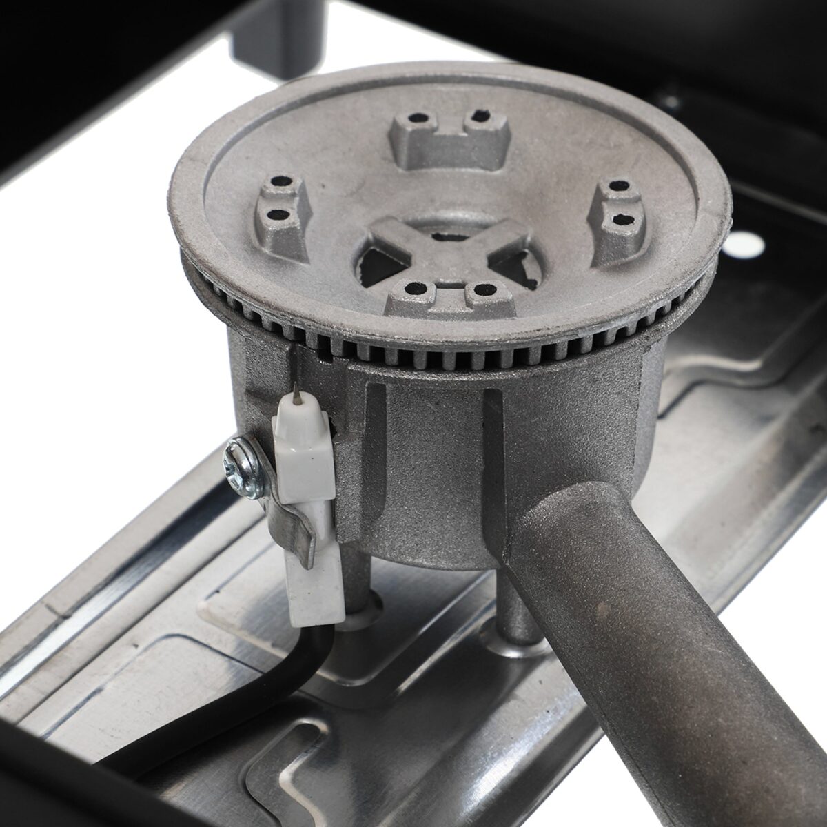 Небольшие ножки позволяют установить плиту в любом удобном месте. После установки газового баллона доступ к нему закрывается. Это делает эксплуатацию прибора более безопасной.