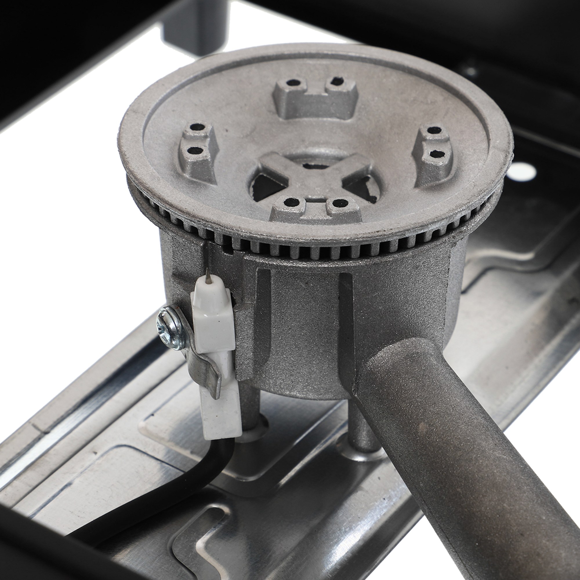 Плита обеспечивает равномерный нагрев. Силу горения можно регулировать с помощью поворотного механизма на корпусе прибора. Подача искры происходит автоматически.