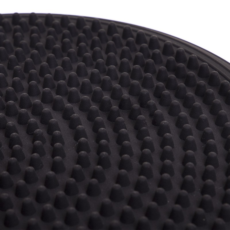 Балансировочная массажная подушка изготовлена из поливинилхлорида благодаря этому она легко выдерживает длительную эксплуатацию пользователями весом до 120 кг. Поверхность снаряда покрыта шипами, оказывающими массажное воздействие на ткани тела.