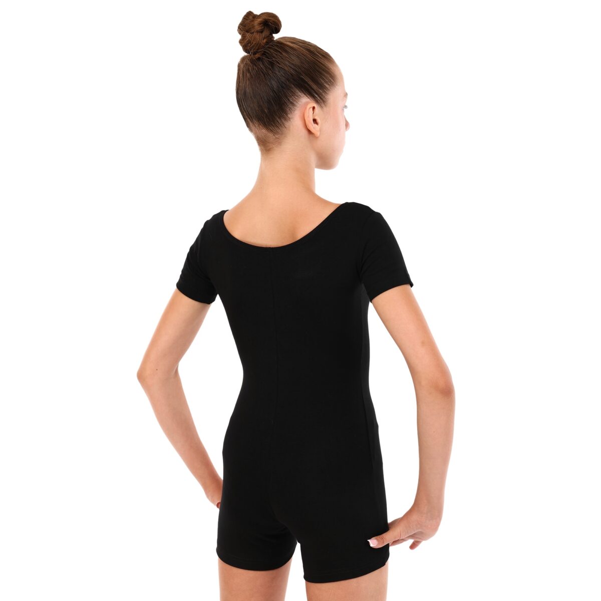 Полукомбинезон представлен в нескольких размерах и подойдёт как для подростков, так и для самых маленьких гимнасток. Помимо гимнастики, использовать его можно во время занятий хореографией, акробатикой, балетом. Он может быть использован как сценический образ и как тренировочный костюм. Плоские швы гарантируют комфорт и защиту от натирания кожи. Полукомбинезон с короткими рукавами отлично подойдёт для тренировок в жаркое время года.