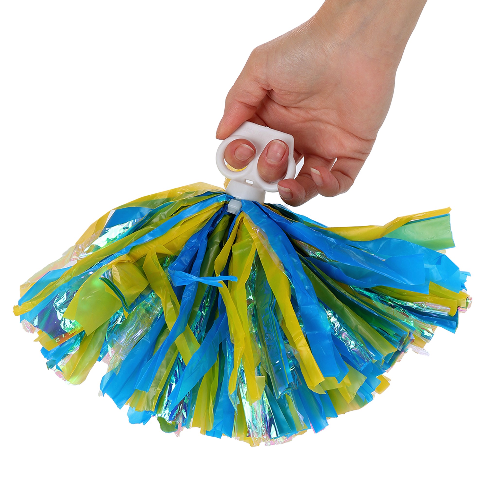 Комплект помпонов, состоящий из двух аксессуаров, выполненных в сине-жёлтом цвете. Благодаря использованию помпонов команда по чирлидингу может добиться ещё большей синхронности движений и насыщенности выступлений. Один помпон весит всего 40 г. Добиться минимального веса изделия удаётся благодаря использованию лёгких материалов. Сине-жёлтая часть помпона выполнена из полимерной плёнки. Она окрашена равномерно и хорошо сохраняет цвет в течение длительного времени. Пластиковая рукоятка в форме колец гарантирует хороший захват, но при этом не утяжеляет изделие.
